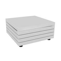 Une table basse pour l'espace jour, capable de changer de forme grâce à des pièces mobiles donnant naissance à des lignes géométriques en constante mutation. Le plateau du dessus et celui du dessous sont fixes tandis que les trois plateaux au centre peuvent tourner à 360°, modifiant les possibilités de rangement et d'utilisation. Lorsqu'il est complètement fermé, Rotor se présente comme un élément compact et essentiel, 63x63 cm.
