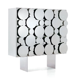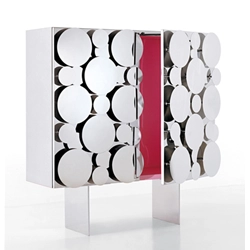 Buffet Gagà en mdf laqué roses ou blanc avec des portes, applications et pieds en acier inox brillant, étagères intérieures en cristal.