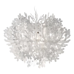 Vous avez probablement déjà disposé des fleurs sur la table, mais pourquoi ne pas en ajouter d’autres dans le reste de la maison ? Fiorella Slamp inspirée d’un riche bouquet, elle en rappelle la fraîcheur et la facétie. Grâce à ses 24 bras avec une décoration naturelle, elle affiche un aspect réaliste, en jouant avec les surfaces dans une séquence d’ombres et de reflets.