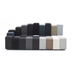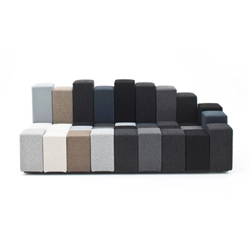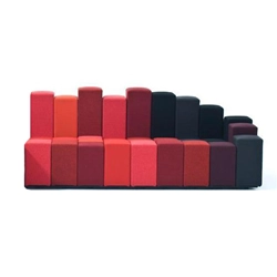 Les modules de base carrée 21 x 21 cm, vont d’une hauteur minimum de 27,5 à un maximum de 83 cm et sont réalisés en polyuréthane expansé de densité variable. Ils sont plus rigides dans la partie basse pour contenir le goujon métallique et plus moelleux dans la partie haute pour assurer le confort de l’assise.