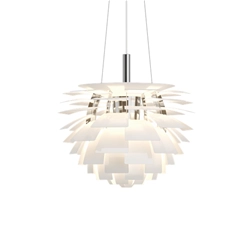 La suspension PH Artichoke Louis Poulsen fournit un éclairage sans le moindre éblouissement. Les 72 feuilles sont disposées avec précision en douze rangées de six, toutes différentes. Elles éclairent le luminaire et forment une lumière diffuse au dessin unique. La suspension fournit un éclairage décoratif et confortable. Ampoule exclue 1x100W E27.