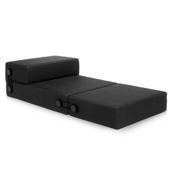 Trix se compose de trois coussins différents reliés entre eux par un élégant système d'élastiques qui, au moyen d'un simple mouvement de rotation, peut se transformer et s'adapter à des utilisations variées. Trix peut être un pouf original pour deux personnes et peut se transformer en un lit confortable, en une chaise longue pratique ainsi qu'en un fauteuil accueillant. Trix est en polyuréthane expansé revêtu d'un tissu technique à trame tridimensionnelle déhoussable.