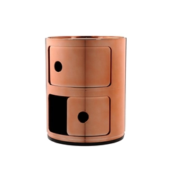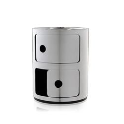 Les Componibili Kartell s’enrichissent de nouvelles finitions métal qui donnent une allure inédite à quelques-uns des grands classiques Kartell. Grâce à Kartell, le plastique est devenu précieux, noble et raffiné. Aujourd’hui, avec les nouvelles finitions brillantes et métallisées dans les tons or, cuivre, argent et titane, le produit Kartell devient un véritable objet de luxe.
