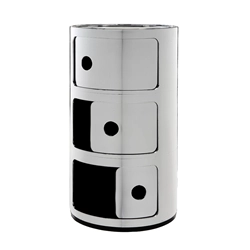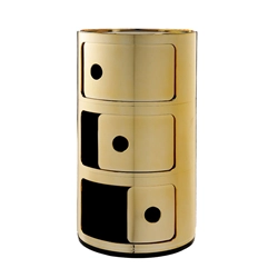 Les Componibili Kartell s’enrichissent de nouvelles finitions métal qui donnent une allure inédite à quelques-uns des grands classiques Kartell. Grâce à Kartell, le plastique est devenu précieux, noble et raffiné. Aujourd’hui, avec les nouvelles finitions brillantes et métallisées dans les tons or, cuivre, argent et titane, le produit Kartell devient un véritable objet de luxe.