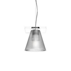 Light-Air de Kartell s'évolue en fonctionnalité et esthétique. Les modèles sculpturaux pour applique et suspension sont disponibles en différentes tonalités seulement dans les versions entièrement réalisées en plastique transparent. Ampoule incluse: LED 5W E14 2700K