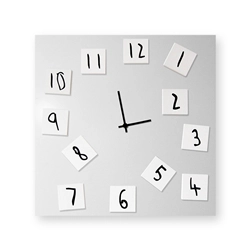 La particularité de cette horloge insolite est celle d'avoir les numéros sérigraphié sur des cartes carrées magnétiques en forex qui offrent la possibilité au propriétaire de créer le cadran selon ses goûts esthétiques. Une stimulation à être chaque jour plus créatif.