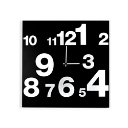 La forme carrée du panneau ainsi que l'élégance du signe graphique font des horloges Numbers Clock Design Object une solution idéale pour un mobilier esthétique et fonctionnel. Deux versions: la première avec les numéros sérigraphiés dans un cercle imaginaire, la seconde qui développe une ligne. Le mouvement incorporé provient de la société Junghans.
