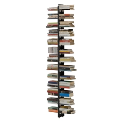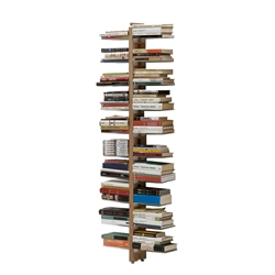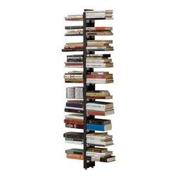 C'est le livre lui-même qui devient la vraie déco, sans occuper trop de place. Sa structure en colonne lui permet en effet non seulement d'être posée sur le sol ou bien contre un mur, mais aussi d'être suspendue afin de profiter, d'un coup d'œil, de toute la collection de lectures.