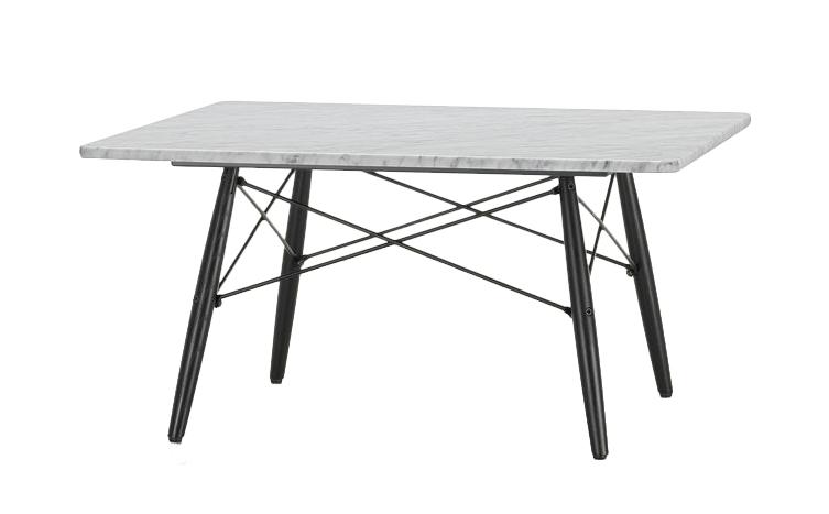 La table basse créée en 1949 par Charles et Ray Eames a été conçue comme pièce unique pour leur propre résidence, la légendaire Eames House à Pacific Palisades près de Los Angeles. Depuis, la table continue à marquer de son empreinte cet intérieur historique unique. Le plateau de table rectangulaire, qui suggère à la fois une impression de simplicité et de luxe, était à l‘origine revêtu de feuilles d‘or. Son piètement « dowel-leg » est une variante du piètement en bois utilisé pour les Eames Plastic Chairs. Au cours des années suivantes, Charles et Ray Eames produisirent deux autres tables de ce type, toutefois avec un plateau en marbre.