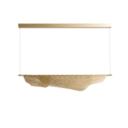 Duchaufour-Lawrance dessine Mediterranea pour Petite Friture, une série de luminaires en laiton brossé et LED. Reposant sur une structure légère, le linge de métal sculpte et diffuse la lumière grâce au motif dynamique et géométrique. Ce principe se décline aussi bien en applique, suspension, liseuse et lampe à poser.