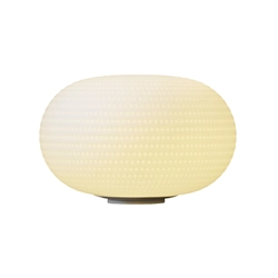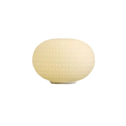 Bianca Fontana Arte est une famille de luminaires équipés d'un diffuseur en verre doublé blanc laiteux, soufflé fixe avec finition satinée. La décoration en surface du diffuseur est constituée d'un série régulière de sillons légers et délicats qui, en se détachant sur le volume blanc du verre, évoquent de petites empreintes dans la neige fraîche. Soufflés à la bouche, meulés au ruban et plongés ensuite dans de l'acide pour obtenir cet « effet soie » si caractéristique des verres de qualité, les diffuseurs Bianca sont disponibles dans trois diamètres qui complètent les treize types de luminaires qui forment la famille. Le plus grand mesure 50 cm de diamètre et, de par ses dimensions et la qualité du verre, il a représenté, représente et représentera à chaque production, un véritable défi pour les maîtres verriers les plus habiles, habitués au soufflage fixe du verre qui, selon le processus de fabrication vénitien, ne prévoit pas l'intervention d'aides externes pour faire tourner et modeler le verre dans le moule, mais se base uniquement sur leur extrême habileté et sur leur capacité pulmonaire. Le blanc mat des peintures appliquées sur les divers supports métalliques évoque le nom et la couleur du diffuseur. Bianca produit une émission lumineuse diffuse dans l'espace alentour, particulièrement chaude et enveloppante. Ampoule non fourni.