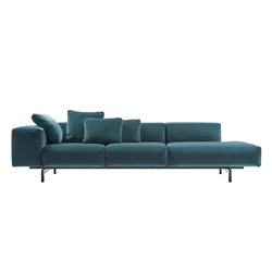 Le canapé Largo Kartell est un système de canapés avec différentes configurations, qui offre un appui solide et linéarité. La structure en acier verni soutient les coussins amples en mousse de polyuréthane revêtus en velours. La particularité du projet est aussi donnée par la recherche sur les tissus qui constituent un nouveau domaine de développement de la collection Kartell Soft. Coussins escluses.