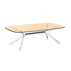 Blast est un hommage à la légèreté et à la pureté formelle. Elle reflète l’obsession de Starck de créer un maximum d’effet avec un minimum de matérialité, incarnée par la base en polycarbonate transparent de la table.