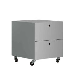 Tiroirs Kriptonite sur roues avec cadre en bois et couvercle en aluminium. Disponible en quatre largeurs différentes et cinq hauteurs. Tiroirs internes en contreplaqué de bouleau.