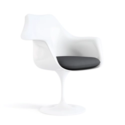 KNOLL chaise pivotant avec coussin TULIP. KNOLL swivel chair wirh cushion TULIP. La collection Tulipe d' Eero Saarinen comprend un fauteuil, une chaise, à base pivotante ou fixe et un tabouret à base pivotante.Les chaises sont disponibles avec coussin d'assise entièrement tapissé ou avec intérieur de la coquille entièrement tapissé et coussin d'assise. Le tabouret, uniquement avec coussin d'assise tapissé. Le logo KnollStudio et la signature de Eero Saarinen se trouvent sous le piètement. Base centrale en aluminium moulé, finition rilsan pour les versions blanche et noire. La base platine a un revêtement polyuréthane avec finition transparente. La coque est moulée, réalisée en fibre de verre de polyester renforcé.FinitionsLa coque et la base sont disponibles en noir, blanc ou platine.