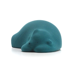 Les Resting Animals sont le résultat d‘un récent projet de recherche de Front qui se concentre sur le lien étroit entre les humains et les objets figuratifs. Le duo de designers a demandé à des personnes sélectionnées de manière aléatoire quels objets leur semblaient être les plus précieux et les plus significatifs du point de vue émotionnel dans leur vie. La majorité des réponses se sont avérées être des figures animales qui étaient perçues comme ayant une personnalité, des caractéristiques ou une histoire commune. L’observation systématique de la manière dont certaines espèces dorment ou hibernent a déjà fait l’objet de travaux antérieurs de Front. Cet intérêt est à présent transposé dans un groupe de représentations d’animaux endormis – Resting Animals – dont la posture dégage beaucoup de calme et de placidité. Parmi celles-ci, la plus grande est un ours revêtu de tricot qui peut servir de tabouret ou d’ottoman, les projets plus petits étant un chat et deux oiseaux en céramique de tailles différentes. Les Resting Animals font non seulement entrer la nature dans la maison, mais, au-delà de leur rôle décoratif, ils transmettent aussi, à travers leur présence paisible, une sensation de profonde satisfaction et de camaraderie.