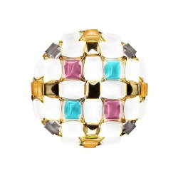 Mida Slamp est un plafonnier à attache magnétique inspiré par le monde de la haute joaillerie, au pavé de pierres précieuses serties sur une structure presque invisible, aux pierres taillées en brillants lisses et polis et disposées en corolle aux couleurs chatoyantes et soyeuses. Disponible en cinq teintes, de la plus voyante Multicolor aux plus modulaires White/Platinum et White/Gold, Mida Slamp est réalisée entièrement à la main avec une combinaison d’Opalflex® blanc et de Lentiflex® imprimé avec une finition morphing spéciale à effet soie sur laquelle se succèdent des strass métallisés brossés. Une Mida Slamp dans la pièce et tout devient précieux. Ampoule non fourni.