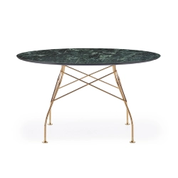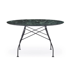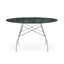 Glossy Kartell est une série de tables idéales aussi bien pour la maison que pour le bureau, caractérisées pa l’élégance et le raffinement du design et des finitions. La structure légère en acier chromé, particulière en raison de l'élément en croix qui unit les pieds à chacun des quatre côtés, soutient le plateau en gres finition en marbre. La collection se décline dans les versions carrée, ovale et ronde (conditionnées dans un emballage plat pratique). Grâce à un simple rapprochement, les tables Glossy Kartell peuvent se transformer en tables de travail pouvant s'intégrer dans les contextes professionnels les plus représentatifs, comme la salle de réunion.