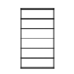 Easy Irony Zeus est une bibliothèque modulaire et amovible. Montants tubulaires carrés 15 x 15 mm et étagères en tôle pliée par pression de 1,5 mm d'épaisseur. Dimensions des étagères L 74 ou 104 cm. Peinture époxy poudre noire cuivre, nouvelle version sablé ou blanc gaufré. Prévu pour un montage mural. Espace utile entre les étagères 36 cm.