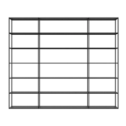 Easy Irony Zeus est une bibliothèque modulaire et amovible. Montants tubulaires carrés 15 x 15 mm et étagères en tôle pliée par pression de 1,5 mm d'épaisseur. Dimensions des étagères L 74 ou 104 cm. Peinture époxy poudre noire cuivre, nouvelle version sablé ou blanc gaufré. Prévu pour un montage mural. Espace utile entre les étagères 36 cm.