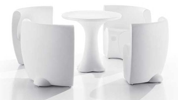 La table design TEDDY, blanche au design organique et au piètement massif est parfaitement adaptée à un usage extérieur : elle ne craint ni la pluie, ni les UV. Réalisée en polyéthylène, elle se marie parfaitement aux Fauteuils MISS PETRA et RHONDA