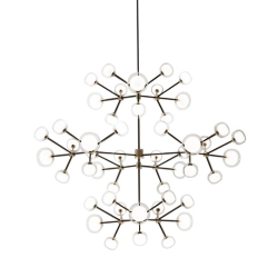 Les lampes Nabila Tooy inspirées par les années '50, élégantes et raffinées, représentent le détail qui enrichit chaque milieu. Elles sont caractérisées par corps lumineux sphériques en verre borosilicate à double paroi proposées en différentes compositions, et une structure en métal verni avec poudres époxy avec détails en laiton brossé ou chrome noir. Nabila est disponible en différentes versions pour satisfaire les exigences de tout milieu; des riches chandeliers en cinq dimensions différentes, à la version de table, table de chevet (plus petite), lampadaire ou murale, même celle-ci disponible en différents modèles pour être installée singulièrement ou en compositions personnalisées. Luxe et sobriété dans un seul élément.
