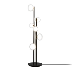 Les lampes Nabila Tooy inspirées par les années '50, élégantes et raffinées, représentent le détail qui enrichit chaque milieu. Elles sont caractérisées par corps lumineux sphériques en verre borosilicate à double paroi proposées en différentes compositions, et une structure en métal verni avec poudres époxy avec détails en laiton brossé ou chrome noir. Nabila est disponible en différentes versions pour satisfaire les exigences de tout milieu; des riches chandeliers en cinq dimensions différentes, à la version de table, table de chevet (plus petite), lampadaire ou murale, même celle-ci disponible en différents modèles pour être installée singulièrement ou en compositions personnalisées. Luxe et sobriété dans un seul élément.