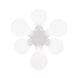 Atomium Kundalini a une forme organique et extravertie inspirée à l'imaginaire science-fiction et préparée pour une diffusion de la lumière multidirectionnelle et en même temps d'atmosphère. Lampe de table ou lampadaire avec diffuseur en polyéthylène moulé en rotatif et structure interne à six lumières montées sur ressorts tendus en acier. Ampoules non incluses: LED 6x6W E14.