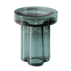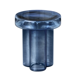 Soda Miniforms aît la tête en bas, d’un souffle. Elle pèse 20 kilos et est soufflée, démoulée et façonnée par trois maîtres-verriers. Le résultat est un volume unique de verre où trois grands pétales dessinent le corps central. Dans Soda, la matière vibre : l’enveloppe dure et martelée du verre en fragmente la transparence en lui donnant une esthétique primitive. C’est la valeur artistique accordée au produit industriel.