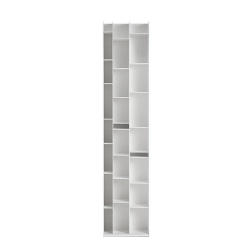 L'iconique bibliothèque Random MDF Italie se renouvelle et la gamme typologique accueille modules et couleurs nouveaux. Les deux variantes dimensionnelles, dénommées 2C et 3C, rendent Random flexible et adaptables à tous les espaces résidentiels et aux différentes exigences du marché. Les nouveaux éléments réussissent à exprimer l'unicité de signe même aux petites tailles, en les utilisant singulièrement pour petites espaces ou niches appropriées. En outre, en combinaison avec le module Random ils renouvellent la modularité de la collection, en réalisant configurations nouvelles et différentes. L'insertion des couleurs, en plus du blanc mat, permet de créer accents différents et de valoriser de nouveau le trait distinctif du produit. Bibliothèque réalisée avec panneaux, épaisseur 6 mm, de fibre de bois à densité moyenne laqués opaques; dossier, épaisseur 10 mm, en mélaminé. Compartiments aux dimensions prédéfinies. Les étagères sont insérées dans les épaules par usinées en queue d'aronde. Pieds réglables jusqu'à 15 mm. Pour des raisons de sécurité on conseille toujours de l'accrocher au mur. En revanche, on conseille l'accrochage horizontal entre les bibliothèques. Par combinaison il est possible de réaliser configurations aux dimensions grandes. Les modules nouveaux, à 2 et 3 travées, peuvent être utilisés séparément ou avec la variante standard, en permettant une flexibilité améliorée et modularité de toute la collection.