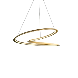 Kepler Petite Nemo Lighting, version aux dimensions encore plus réduites de la lampe Kepler Minor, disponible uniquement en downlight. Suspension en aluminium extrudé peint. Disponible en blanc mat, noir et la nouvelle finition doré. La ligne continue, dessinée sur la base du principe géométrique du ruban de Moebius, est réalisée grâce à un procédé d’usinage tridimentionnel de l’extrudé d’aluminium. Ampoule incluse (Linear LED direct 50W 2700/3000K 2500lm CRI 85 A+).