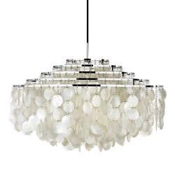 Beaucoup de gens considèrent la collection Fun Verpan un des plus grands chefs-d'œuvre de Verner Panton en ce qui concerne le lighting design. Dès le 1964, cette lampe à suspension a allumé joie et une richesse d'histoires. FUN 11DM est une lampe à suspension aux grandes dimensions avec monture à cinq anneaux.