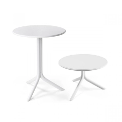 Petite table mange-debout, en résine fibre de verre à plan rond et base à trois pieds prévue pour l’extérieur, parfaite aussi comme complément au mobilier d’intérieur. Facile à monter et à démonter, elle est proposée avec un kit permettant d’obtenir deux hauteurs. Table avec pied central à 3 branches. Polypropylène fiberglass traité anti-UV et coloré dans la masse. Démontable. Effet mat. Avec patins anti-dérapants. Option de double hauteur: 40 cm / 76,5 cm. Résine recyclable.