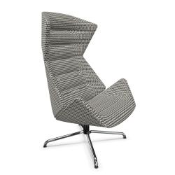 Par la collection 808 l'étude de design Formstelle de Munich a créé un fauteuil qui combine le maximum du confort avec plusieurs possibilités de personnalisation. Le fauteuil lounge 808 jeu avec les contrastes: il se présente comme un une coquille ouverte et, en même temps, protective et elle est parfaite pour se plonger dans la tranquillité en s'isolant du milieu environnant. Son charme réside dans la réinterprétation de façon moderne du fauteuil classique "à oreillons". La partie supérieure du dossier rappelle un collier enveloppant, tandis que la coquille accueillante transmet une sensation de protection. La deuxième caractéristique particulière de ce modèle est le rembourrage confortable qui rappelle à l'esprit les vagues de la mer. La coquille extérieure crée un contraste fascinant avec le noyau doux intérieur, semblable à un coussin moelleux. Enfin, un mécanisme pratique qui permet de régler le fauteuil selon vos exigences. Coque pivotante. Structure en tube d'acier. Grâce au mécanisme caché à l'intérieur du fauteuil, l'assise et le dossier peuvent être déplacés continuellement allers-retours ou incliné en position inclinée.
