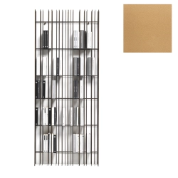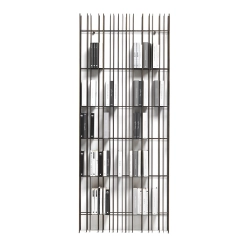 Metrica Mogg est une bibliothèque en métal disponible dans les finitions titane, bruni et or avec étagères en crystal transparent disponibles en bronze ou vert. La structure est simple, le rythme est défini par des baguettes en fer fixées à différents intervalles sur une structure ouvertement rigoureuse dans laquelle les livres et les objets insérés en complètent la forme en écrivant de temps en temps compositions nouvelles.