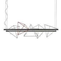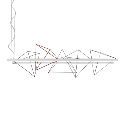 Rock Garden Pallucco est une lampe à suspension réalisée par Kazuhiro Yamanaka qui s'inspire aux jardins de roche japonais. La surface des roches est presque cachée, le visiteur se laisse transporter en imaginant formes et volumes submergés et invisibles. Chaque roche a sa propre inclination et caractère. La relation entre les différentes roches crée une histoire. Rock Garden est une série de lampes composé d'une version à structure rectangulaire où on peut librement positionner différents éléments en forme de pyramide et une lampe suspendue single avec une seule pyramide. Ampoules incluses: Lumière supérieure 74,4W bande de led + Lumière inférieure 74,4W bande de led - 2700K - Dimmable. Version avec 4 pyramides noires + 1 rouge. Il est possible d'acheter la lampe avec les pyramides dans un choix de noir, blanc et rouge.