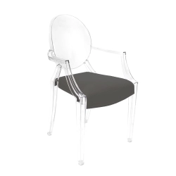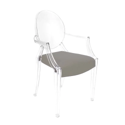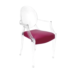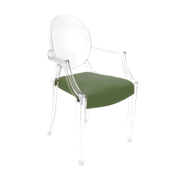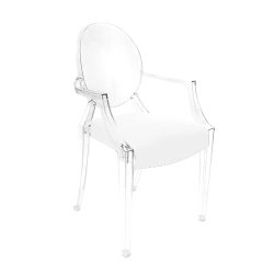 Un petit fauteuil confortable en polycarbonate transparent et coloré,du design Louis XV : l’archétype du baroque revisité pour étonner, émouvoir, fasciner. Louis Ghost est l’exemple le plus hardi au monde d’injection de polycarbonate en un seule moule. En dépit de son aspect évanescent et cristallin, Louis Ghost est stable, résistant aux chocs, aux griffures et aux agents atmosphériques, empilable jusqu’à six pièces. Un modèle extrêmement attrayant et esthétique qui s’intègre avec élégance et ironie dans tout type d’habitation ou d’espace collectif.
