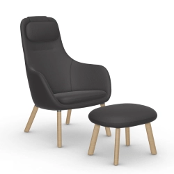 Chair est extrêmement polyvalent, convient à une utilisation à la maison ou dans les espaces publics et peut être utilisé seul, à deux ou en groupe. Cependant, un design minimaliste n‘est pas synonyme de neutralité fastidieuse : les produits de Jasper Morrison portent indubitablement sa griffe. La sobriété signifie plutôt que le design n‘obéit pas aux tendances à la mode mais qu‘il dégage au contraire une aura de sérénité et restera intemporel. La force du design apparaît toujours plus nettement au fil du temps, alors que d‘autres créations contemporaines qui attirent davantage l‘attention sont depuis longtemps tombées dans le déclin. Le fauteuil peut être assorti au HAL Ottoman, l‘utilisateur pouvant ainsi profiter entièrement de son confort en surélevant ses pieds. Les créations de Jasper Morrison ne se démarquent pas par un design remarquablement nouveau ou à la mode, mais incarnent plutôt la mise à jour et la perfection d‘une typologie familière comme le démontre le HAL Lounge Chair qui est la réinterprétation par Morrison du