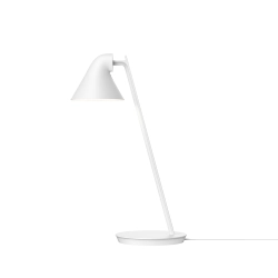 NJP Mini Louis Poulsen est une lampe de table qui émet une lumière douce diffusée directe vers le bas, sans éblouissement. Quand elle est allumée, elle augmente jusqu'à rejoindre un niveau de lumière fixe et elle se baisse quand elle est éteinte. En outre, elle dispose de la fonction timer pour l'extinction automatique après quatre ou huit heures. L'appareil offre une distribution de la lumière large par rapport à sa dimension assez réduite et à l'intérieur de l'écran verni en blanc contribue à refléter la lumière de façon confortable. Le dimmer continu permet de régler la lumière à un niveau adéquat entre 15 et 100%. Le bras a un coin stationnaire de 15° et il peut tourner de 342° autour de la base, tandis que la tête peut s'incliner et tourner pour orienter la distribution de la lumière.