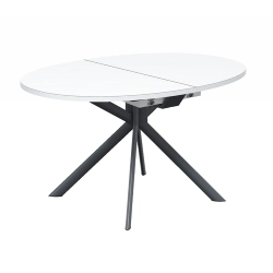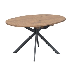 CONNUBIA GIOVE est une table extensible piètement en métal avec plateau rond en bois, bois-céramique ou bois-verre. Piètement central en métal fixe avec quatre pieds inclinés à section elliptique et mécanisme d'ouverture à livre avec rallonge centrale réalisée en stratifié de couleur assortie au bord du plateau Les lignes simples et affirmées de cette table font d'elle un modèle adapté à n'importe quel espace résidentiel.