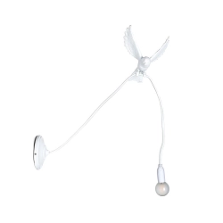 Par Sparrow Seletti on voit la vitalité de ces oiseaux qui vigoureusement apportent la lumière. Le designer a voulu récréer ce moment où on observe un oiseau secrètement engagé et le spécial cordon de ces lampes récrée la magie typique de ces oiseaux. Ampoule fourni: LED E14 2W 2200K 55 Lumen. Dimensions: 100x10 cm