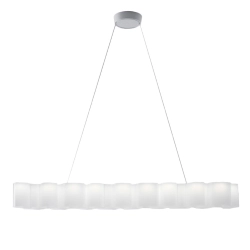La collection Honey Stilnovo joue sur la répétition d'un élément modulaire, qui est multiplié pour créer des configurations linéaires ou circulaires. La lumière chaude est diffusée directement et indirectement et, tamisée par des opales ondulées, donne vie à des nuances fascinantes. Modules en polycarbonate blanc brillant moulé par injection. Circuits TopLED avec lentilles hémisphériques pour élargir l'ouverture du faisceau lumineux. Source dimmable. Pavillon en métal peint en blanc. Les câbles de support servent de conducteurs. LED integrée 35W 3450lm 2700K CRI 90, dimmer à coupure de phase.