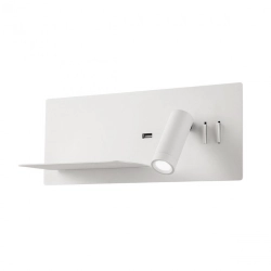 Brook Redo Group est une applique murale pour intérieurs, équipée de LED SMD, structure en métal avec support de téléphone peint en blanc mat, or mat ou noir mat, diffuseur latéral en acrylique satiné. Équipé d'une prise USB pour le chargement du téléphone portable et d'interrupteurs. LED Integrèe 8W+3W 3000K 238lm+1000lm CRI 90.