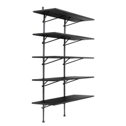 Officina Magis est une système de bibliothèque avec fixation au mur. Montants en fer forgé verni en polyester. Étagères en MDF plaqué ou verni noir.