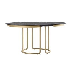 La collection Scala Alma Design est un hommage à Milan, ville de culture et d'histoire, capitale de la mode et du design. La nouvelle table à rallonge complète une collection caractérisée par formes généreuses et lignes enveloppantes inspirées de la couture à l'effet haute-couture. Les plateaux soutenus par une structure légère en métal, évoquée aussi par la base des tables petites qui complètent la proposition.