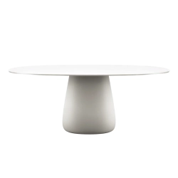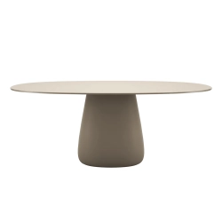 La Cobble Table Qeeboo conçue par Elisa Giovannoni se caractérise par un plateau fin réalisé dans des matériaux adaptés à une utilisation extérieure ou intérieure comme le hpl combiné en différentes couleurs. Disponible avec plateau de 135, 160 et 190 cm de diamètre.