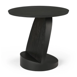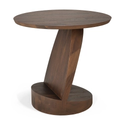 Une forme, des milliers de possibilités. C'est en s'amusant à assembler différentes formes qu'Alain van Havre en est venu par hasard à imaginer cette gamme de tables d'appoint sculpturales. Et c'est souvent ainsi que les plus belles créations jaillissent. À l'instar du reste de la série, la table d'appoint Oblic incarne bien son amour du mouvement. Par sa maîtrise des vides, il crée une dynamique ininterrompue et donne l'illusion d'une sculpture qui se transforme selon l'angle dont on l'observe. Teck massif certifié FSC teinté avec finition vernie.
