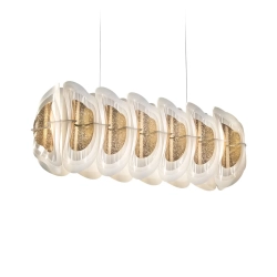 Fiordlys Slamp s'inspire des vagues sinueuses des aurores boréales et des mouvements des falaises nordiques. Dans un contexte métropolitain où la vitesse et le chaos perturbent l'équilibre humain, Fiordlys apporte la brise fraîche et calme de la nature au centre de la maison. Fiordlys est hautement personnalisable dans ses finitions. En effet, conçue en deux versions de suspension - ronde et linéaire - et en une version d'applique murale, elle est disponible en trois finitions différentes : White, Gold et Silver. LED intégrée: 30W 3500lm 2700 K, bord arrière Triac à intensité variable. Variateur DALI sur demande ou via CASAMBI APP.