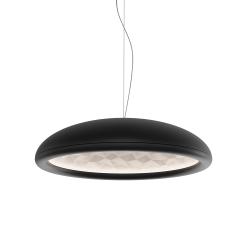 Febo H1 Rotaliana c'est un lustre fait de deux calottes: l’une à l’extérieur, simple et compacte, qui évoque une coupole rabaissée et une autre, à l’intérieur, faite de facettes pour refléter la lumière. Le dessin tridimensionnel des facettes en forme de diamant dérive de l’architecture arabe et des études d’Escher sur la division régulière des surfaces. La lumière des LED cachées dans le cadre circulaire se réfléchit sur les surfaces en facettes à l'intérieur pour provoquer un effet fascinant de réfractions. Power LED integrée 48W 2700K 3120lm CRI 90.