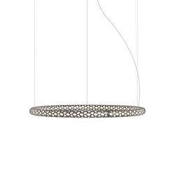 Squiggle H1 Rotaliana s'inspirant de la "Structure au néon" de Lucio Fontana pour la IX Triennale de Milan, Squiggle est un exosquelette tubulaire pendu au plafond qui cache une longue bande LED faisant jusqu'à 6 mètres. Une séquence d’ouvertures de forme d'hexagonale irrégulière allège la structure métallique en donnant lieu à des images géométriques très différentes les unes des autres: des lignes courbes cassées, le symbole de l'infini, des anneaux concentriques de plusieurs tailles. Power LED integrée 40W 2700K 2800lm CRI 90.
